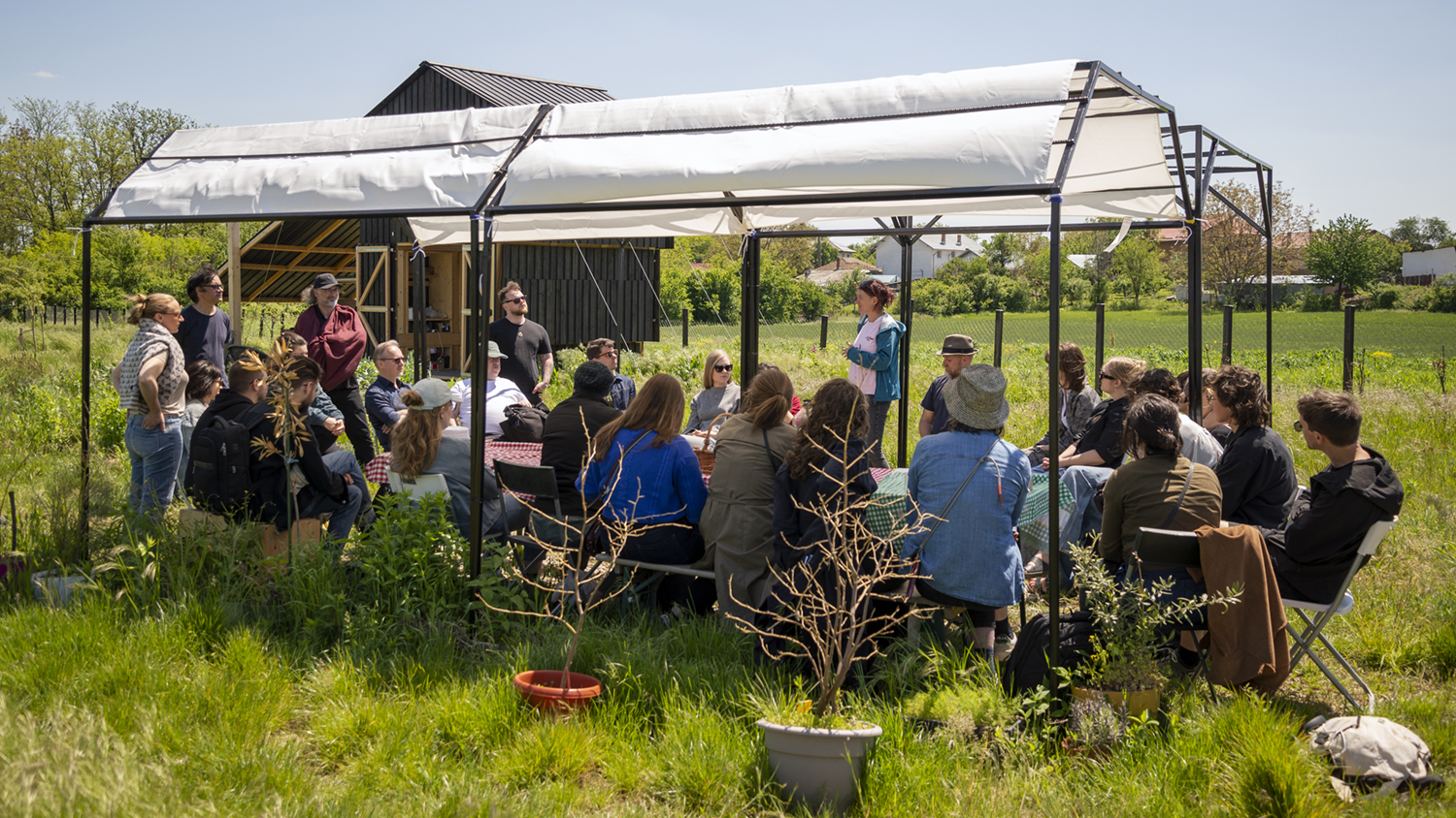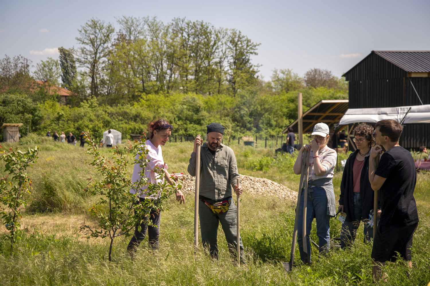In 2024, when more lands were bought to expand the possibilities of the Station, the idea of a real community appeared as poignant, with questions about how its needs could respond to the place while giving it character. This is how The Spring Entrance Community got a name, from the little street name by the side of which the lands are situated. The Community includes, besides the Station, ASK (Amaranth Seed Kollective), a group formed by sound artist Mihai Mitran, artists Dan Vezentan, Mihaela Moldovan, Eduard Constantin, cultural manager and performer Maria Mora, curators Raluca Voinea, Adelina Luft, and architects George Marinescu and Daria Oancea; and the Three Ashes Foundation, established by curator Charles Esche.