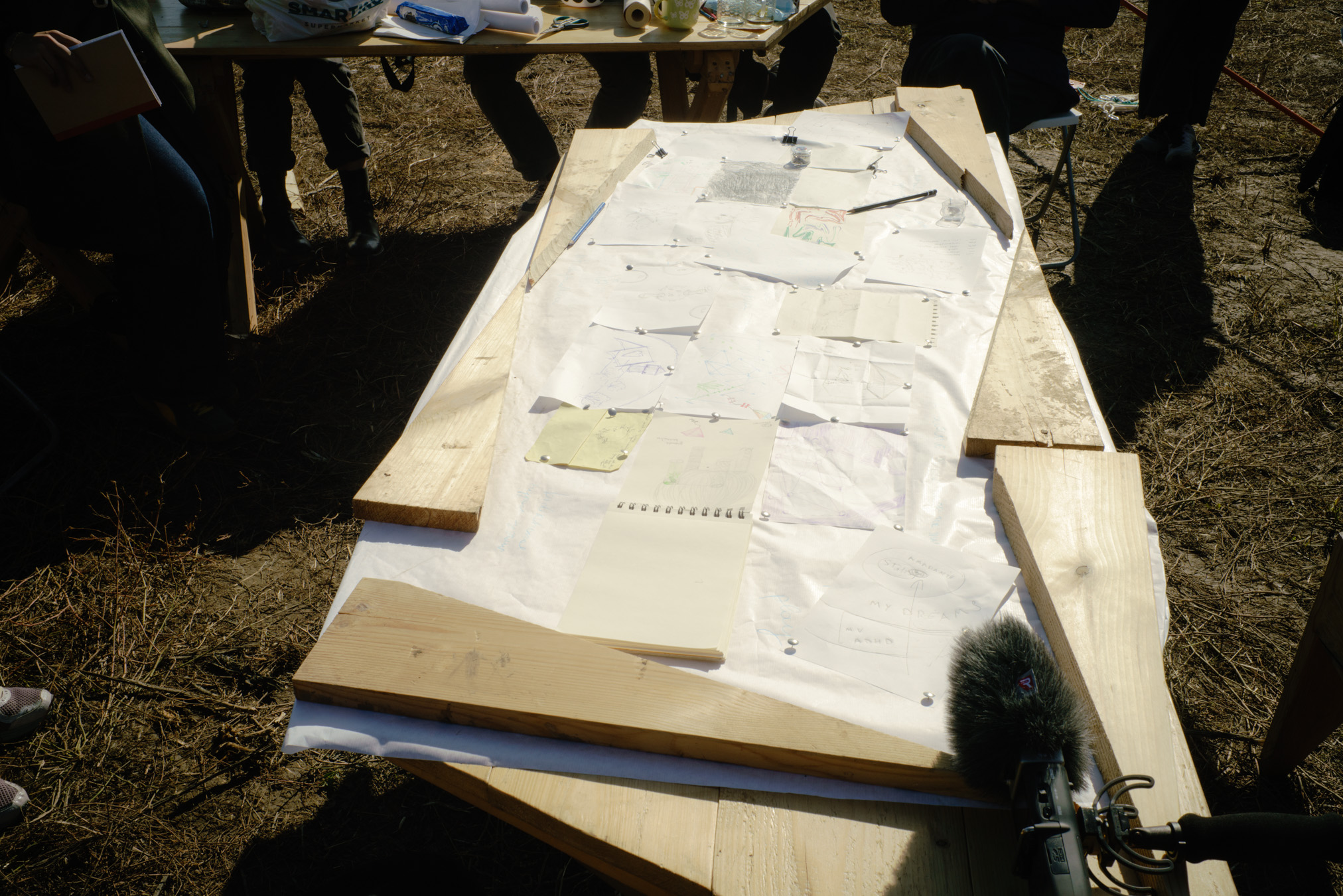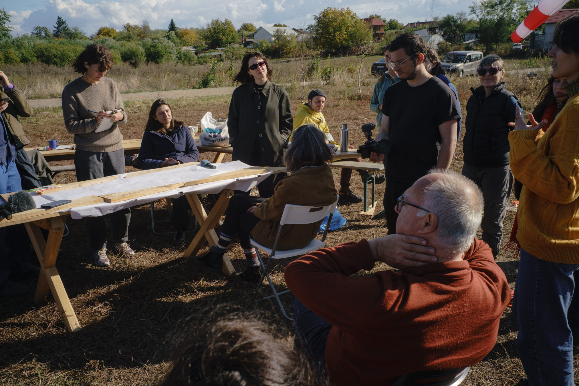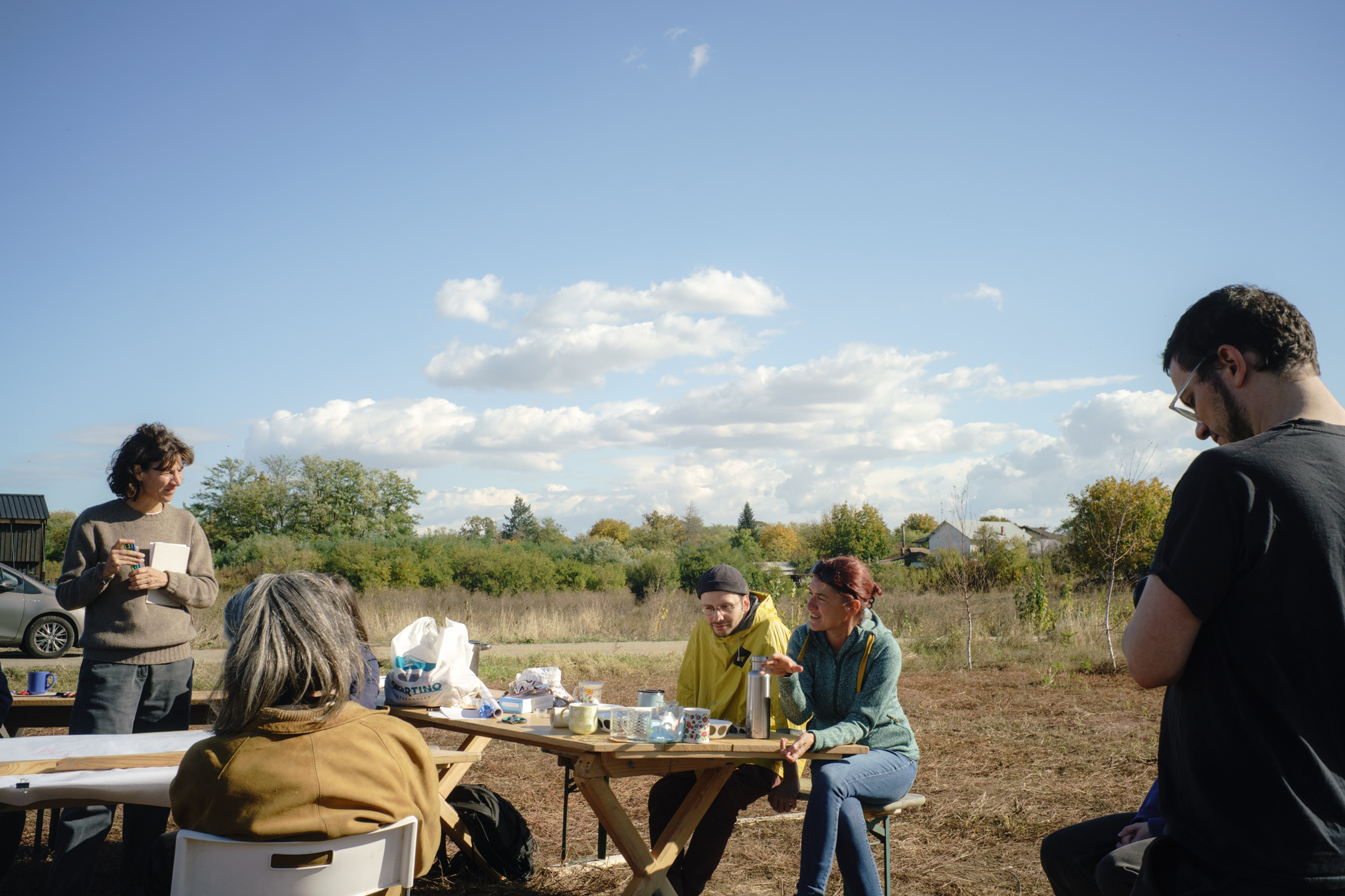 “I feel this land next to the Station is just starting on a journey. If I can influence it, I hope it will be a long one and that the way stations along the journey will be ones we can decide together as a form of commoning ideas and actions. I hope we can join together and join ourselves to the land in time. This moment feels like the start of such a journey, and I’d like us all to help us get to know this land and share our impressions. I would therefore ask everyone to walk around the land for 20-30 minutes. Take care of what is growing, but feel free to touch, taste, smell, feel, look, anywhere. I’d then like us to come together and each tell us one aspect of the land that they feel they know about already, and one aspect you would like to know more about. It can be giving the name to a plant or an animal, something about the soil, about the air, the view, the fence, the tree; it can be about doing something now or later, or remembering what happened. It can be about its past, present, or what might imagine could happen. Really anything. I will try to record, but if you can write down or draw anything in the session, I’ll collect it together as a little archive of the first steps on the journey. Thanks in advance for joining us.”